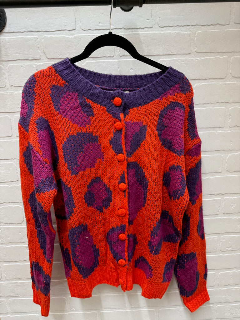 Animal print button front cardigan fit & model notes: • model is 5'9" and is wearing a small. • all measurements are approximate. Fabric contents: • 50% acrylic • 35% polyester • 15% nylon