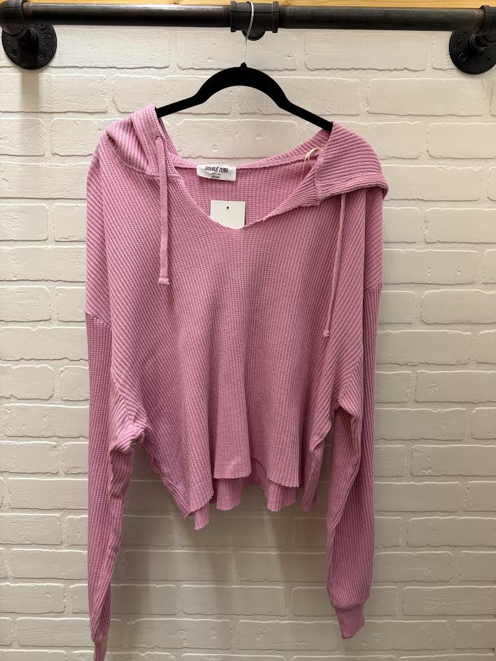 Experience comfort and style with this cropped waffle knit hoodie. Featuring a relaxed fit, this hoodie is perfect for layering or wearing on its own. The waffle knit texture adds a touch of coziness, while the cropped length offers a modern look. Complete with a hood and drawstring detail, this hoodie is ideal for casual outings or lounging at home. Pair it with high-waisted leggings or jeans for a chic, laid-back ensemble. 100% cotton model is 5' 9" tall, 32" chest, 23" waist and 35" hips and wearing a size small imported. Designed in the usa