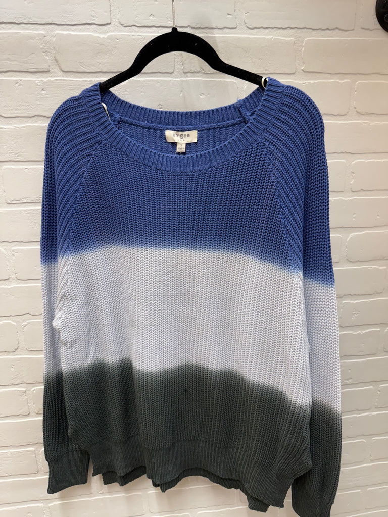 Dip Dye Round Neck Knit Sweater With Side Slits And Ribbed Hem