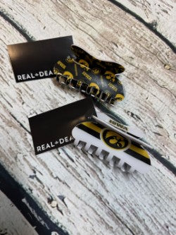 The team hair claw set is the perfect accessory for showing off team spirit on game day! With its durable pvc plastic construction and team pattern design, it not only adds a pop of style to your outfit but also keeps your hair in place with its reliable spring. Plus, its versatility makes it suitable for all hair types, whether you have thick, curly, or straight locks. And with dimensions of 4 inches in width and 3 inches in height, it's just the right size to make a statement without overwhelming your look. Dimensions: w4" x h3"