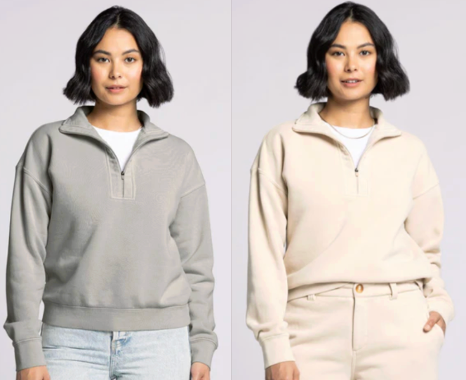 Details: mock neck half zipper front closure drop shoulder measurements for a size small: length: 23" chest: 21" sweep: 19.5" sleeve length: 21.5" content: 70% cotton 30% polyester