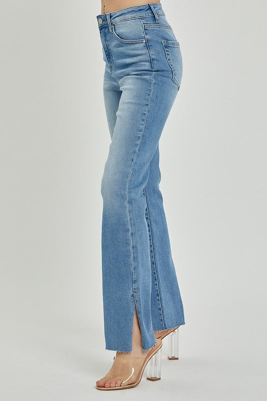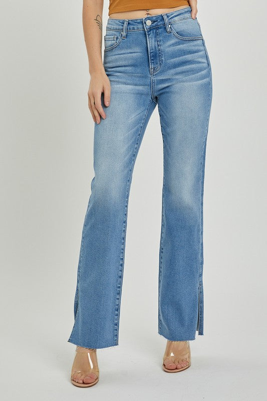 Risen - High Rise Raw Hem Straight Leg With Slit
