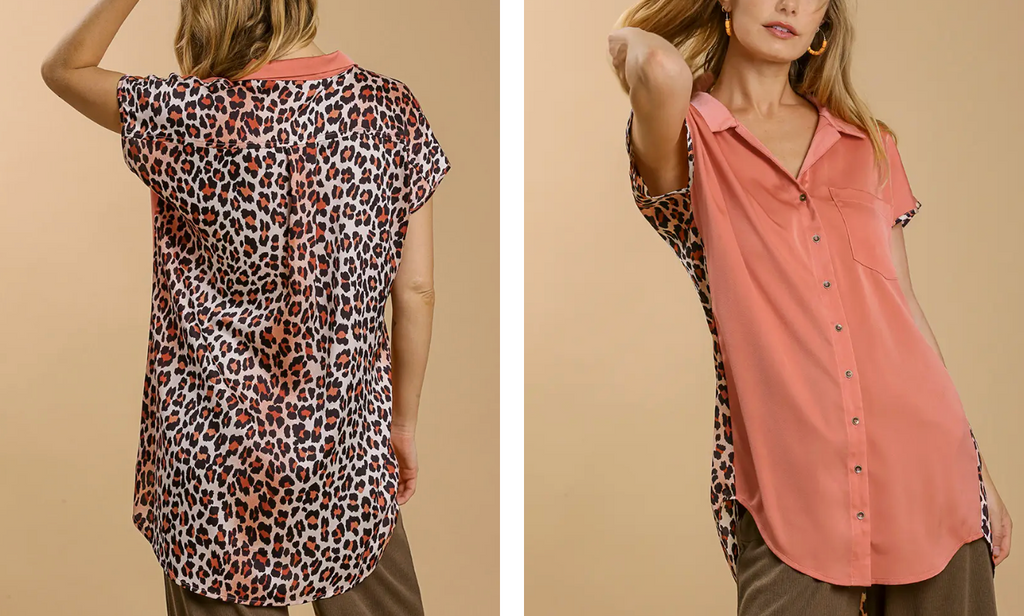 Satin Animal Print Collar Button Down