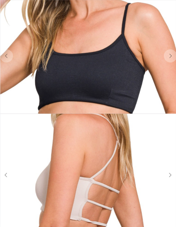 Seamless ribbed 3-strap & cross back bralettes *with removable bra pads total body length (high point bust): 7.5", bust: 22.5" approx. - measured from s/m ** color may vary slightly due to monitor resolution - 90% nylon 10% spandex