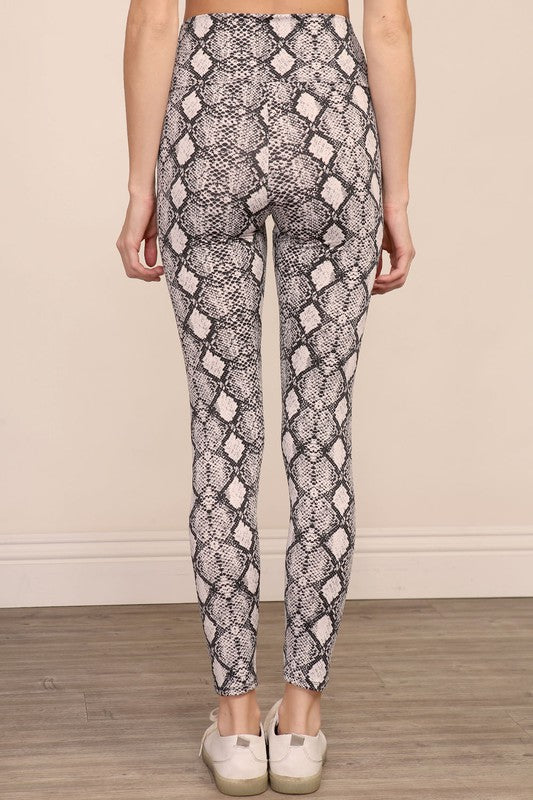 Step up your style game with our sleek snake print lightweight leggings - a bold, fashion-forward essential for workouts, errands, or laid-back lounging. Designed with a dynamic allover snakeskin pattern, these leggings bring an edgy twist to your activewear lineup while keeping comfort at the forefront.