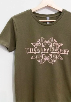 Short sleeve washed cotton "wild at heart" butterflies graphic round neck tee