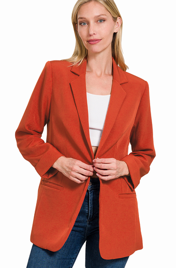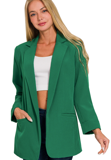 WOVEN LONG SLEEVE OPEN FRONT CLASSIC BLAZER