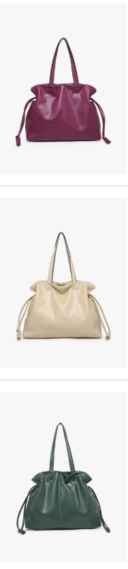 Style: slouchy tote with drawstring and snap closure material: vegan leather features dual handles for easy carrying equipped with feet to protect the bottom of the bag spacious interior to accommodate your essentials versatile design suitable for various occasions dimensions: length: 18 inches height: 5.5 inches depth: 8.5 inches
