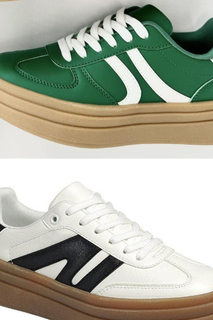 Your new favorite casual sneakers! Designer inspired sneakers with popular gum sole and a added platform for maximum comfort. Gorgeous color combination and new added colors & new stripe design. New sneakers, platform sneakers, lace up sneakers, casual sneakers, stripe sneakers, faux suede sneakers, faux leather sneakers