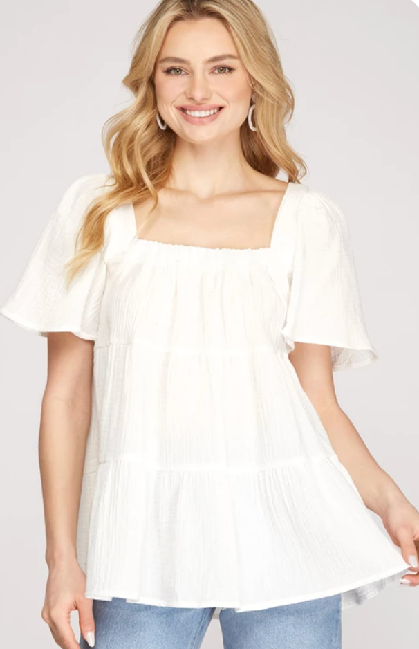 Flounce Sleeve Tiered Double Guaze Tunic Top
