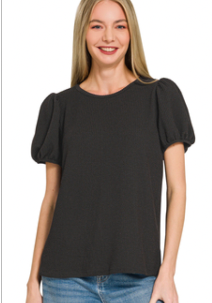 Ribbed puff sleeve top total body length: 24", bust: 36.5" approx. - measured from small * color may vary slightly due to monitor resolution - 78%polyester, 19%rayon, 3%spandex