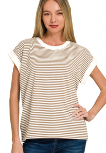 Stripe Contrast Trim Top