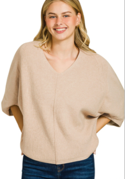 Viscose v neck dolman sweater -curved hem total body length: 23.75", chest: 40.25" approx. - measured from small ** color may vary slightly due to monitor resolution - 50%viscose, 27%polyamide, 23%polyester