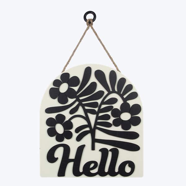 Wood raised floral design hello wall sign/door hanger